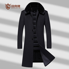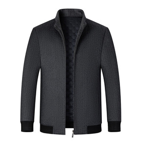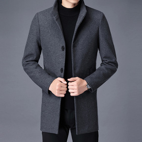 秋冬新款中老年男士羊毛呢大衣男中长款加棉加厚立领呢...