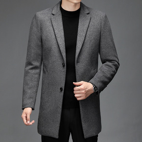 跨境新款羊毛呢大衣男中长款加厚翻领时尚休闲男装秋冬...
