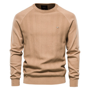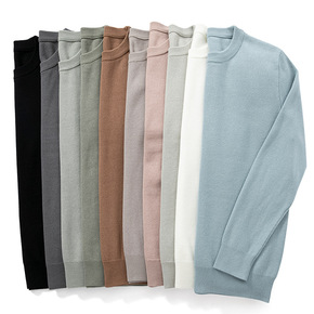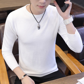 外贸男装长袖圆领纯色秋冬套头毛衣潮青少年修身男士个...