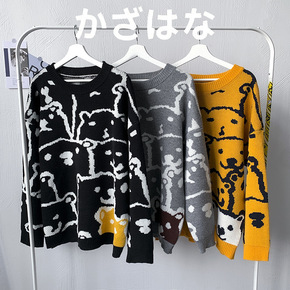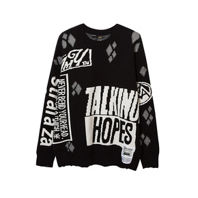 2021秋季情侣街头美式暗黑系字母印花针织毛衣男秋...