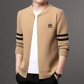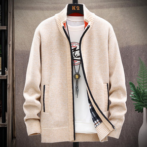 2022秋冬加绒潮流帅气纯色百搭男士开衫雪尼尔外穿...