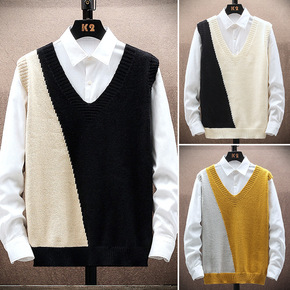 秋冬青少年亚马逊背心学生款潮男士毛衣针织坎肩V领毛...