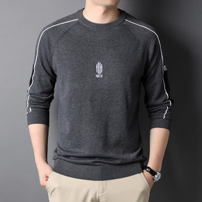 2021秋冬新款男士针织衫男式毛衣圆领修身青年 毛...