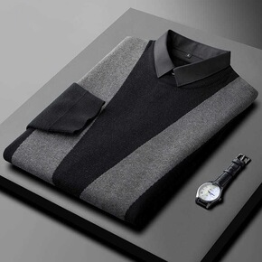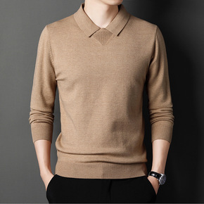 2021秋冬保暖男士羊毛衫新款时尚潮流个性翻领宽松...