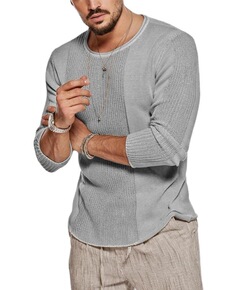 2021春季外贸新款圆领镂空针织上衣欧美男士休闲修...
