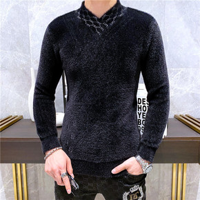 2021秋冬新款韩版男士时尚休闲针织衫水貂绒衫毛衣...