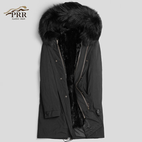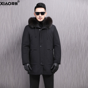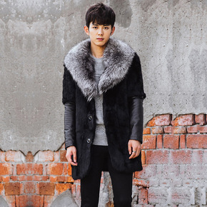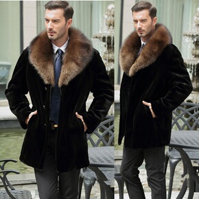 新款特价男士仿皮草外套中长款水貂毛男装银狐狸领皮毛...