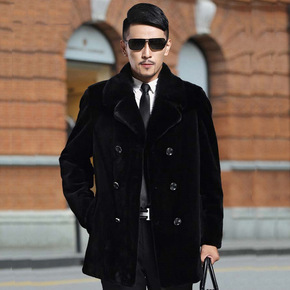 男士水貂毛仿皮草外套貂皮大衣整貂皮中长款男装水貂裘...
