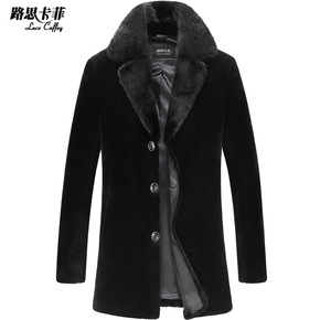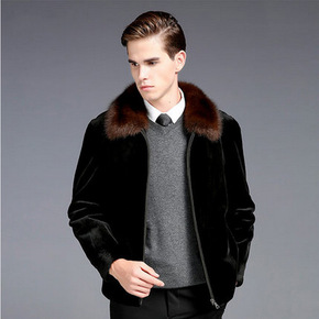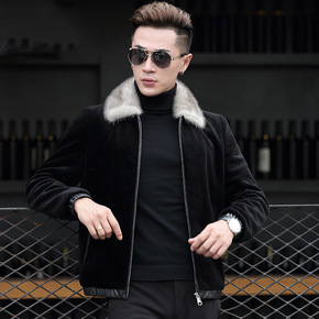 海宁皮毛一体男真皮皮衣中长款水貂西装领羊剪绒皮草羊...