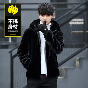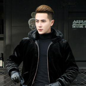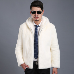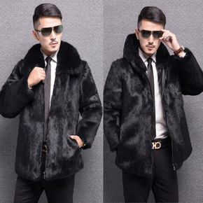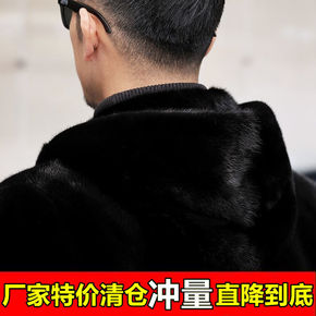 新款特价仿貂皮大衣男士整貂男款水貂皮草带帽翻领外套...