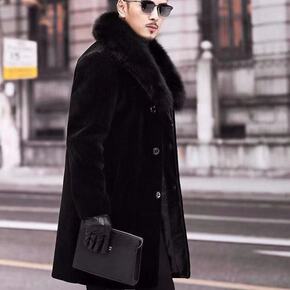 秋冬新款男士皮草外套仿水貂毛大衣长款欧美大码保暖休...