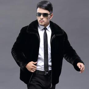 仿皮草男装整貂貂皮大衣男水貂翻领水貂毛皮草男士裘皮...