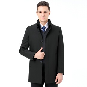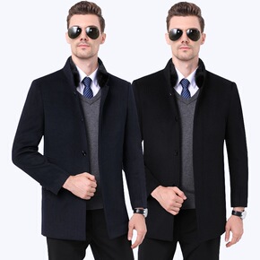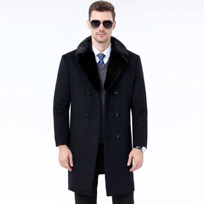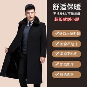 正品水貂毛领羊绒大衣男中长款冬季中老年爸爸装商务羊...