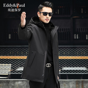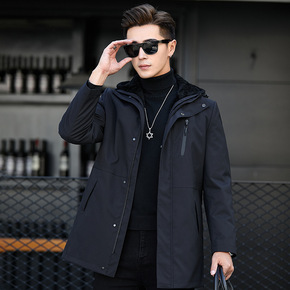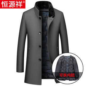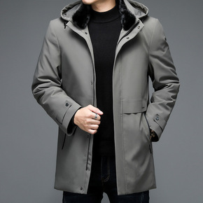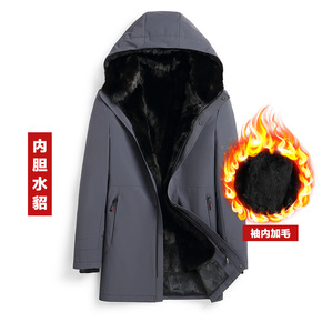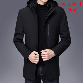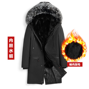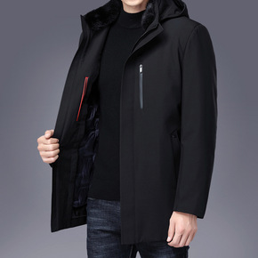中老年男士羽绒服中长款水貂毛领加厚爸爸装可拆卸内胆...