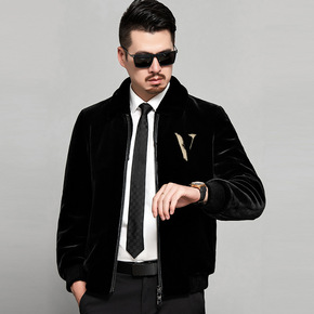 特价2021新款进口整貂天鹅绒时尚翻领男貂皮大衣水...
