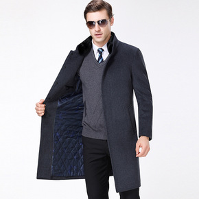 领导干部羊绒毛呢大衣男中长款过膝中老年水貂毛领尼克...