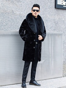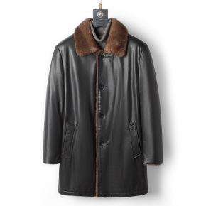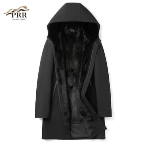 海宁整貂皮大衣水貂内胆皮毛一体男士中长款尼克服皮草...