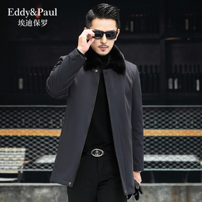 实体店冬季花公子男士立领羽绒服商务休闲中年水貂毛领...