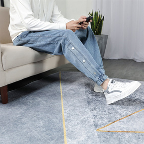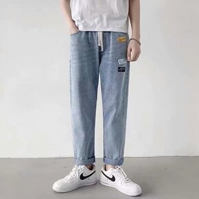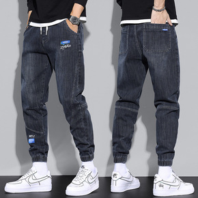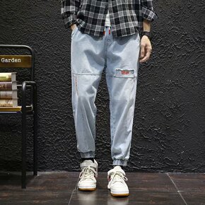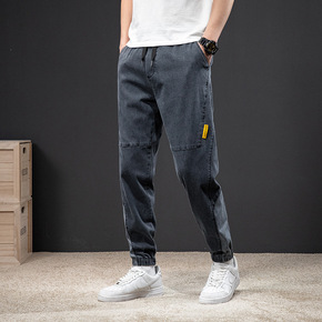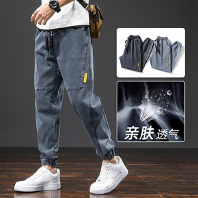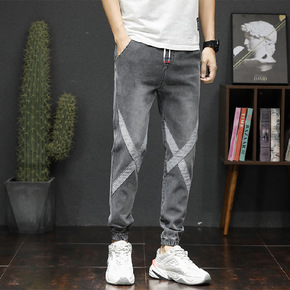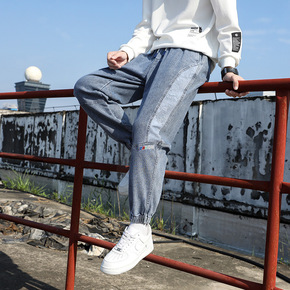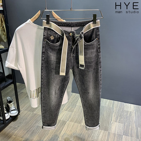 浅灰色弹力牛仔裤男2021春夏新款微哈伦裤韩版潮流...