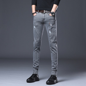 2020潮流精品男装牛仔裤破洞弹力小脚裤青少年韩版...