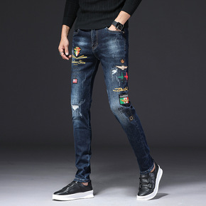 2019新款港风喷漆洗低腰小脚品质夜店潮流破洞个性...