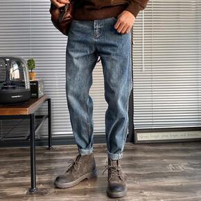 2019新款日系潮流九分牛仔裤男浅色宽松直筒工装裤...