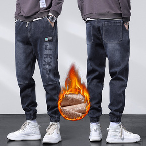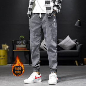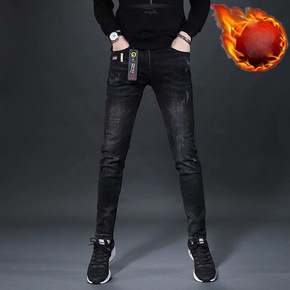 加绒加厚牛仔裤男潮牌ins冬季新款韩版潮流修身直筒...