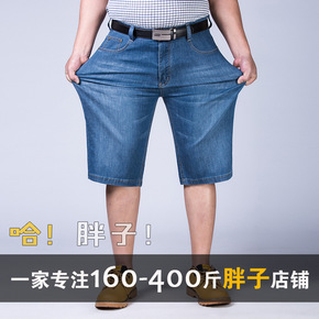 MZ1382牛仔短裤男七分裤胖子大码肥佬弹力宽松加...