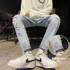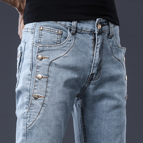 2020春夏季牛仔裤男潮牌弹力修身小脚裤时尚百搭长...
