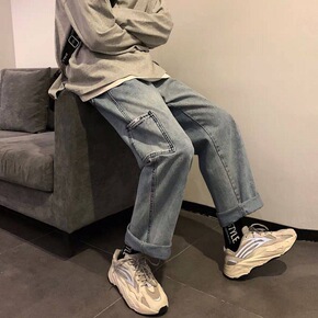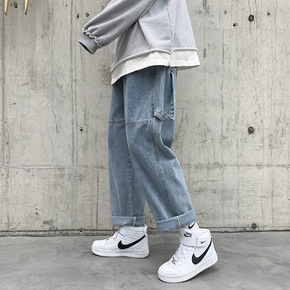 牛仔裤男直筒宽松秋季阔腿长裤子高街ins潮牌美式街...