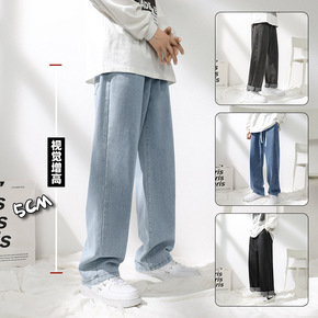 牛仔裤男夏季新款直筒坠感休闲裤慵懒阔腿运动裤春秋复...