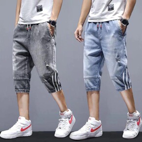 夏季薄款牛仔短裤男潮流韩版修身帅气轻薄街头五分裤衩...