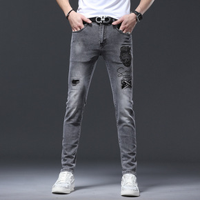 潮牌牛仔裤男士2022新品韩版修身弹力小脚裤青年时...