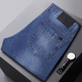 夏季薄款工地干活男士牛仔裤直筒宽松弹力休闲大码便宜...
