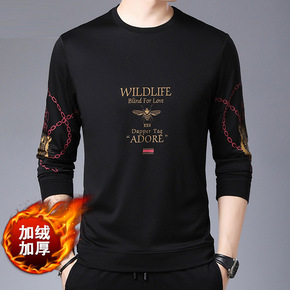 厂家直销冬季加厚卫衣男士中青年圆领打底衫保暖加肥加...