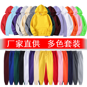 2021秋冬季加绒男士纯色套头连帽卫衣印logo潮...