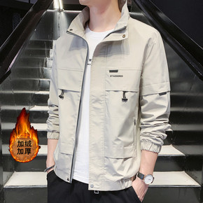潮牌拼接外套男士秋冬季潮牌加绒加厚休闲百搭上衣夹克...