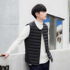 秋冬男式短款羽绒服轻薄户外运动男装外套高领拆卸防风...