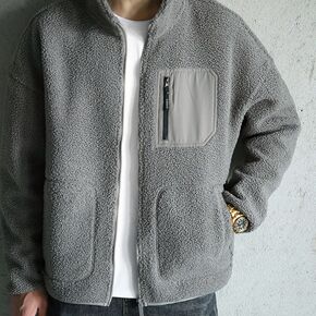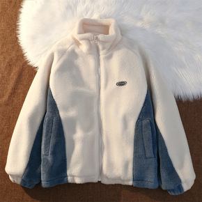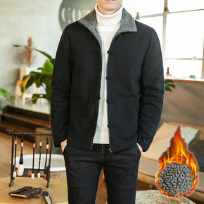 男纯棉水洗休闲棉服宽松大码加厚羊羔绒冬装棉衣立翻领...