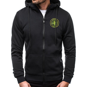 跨境欧美冬季男装上衣宽松加绒加厚卫衣潮拉链衫棉衣双...