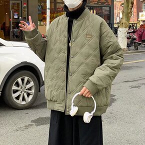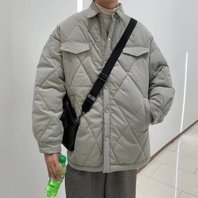 工装棉衣男2021冬季潮牌纯色立领棉服新款菱形格保...