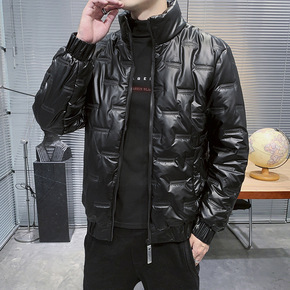 21新款男式棉服修身连帽短款烫金双面穿羽绒棉衣冬季...