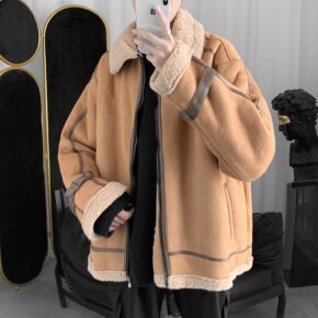 羊羔绒毛外套男士秋冬季加绒加厚棉衣潮流ins潮牌棉...