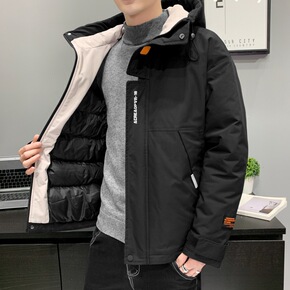 棉衣男潮流时尚加厚保暖男士外套防小偷口袋设计后简约...