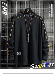 潮男装 2021秋冬潮流撞色卫衣男帅气修身套头体恤...