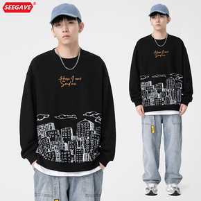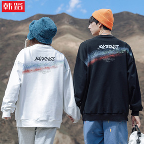 2022春秋新款个性印花卫衣男日系潮牌宽松字母刺绣...