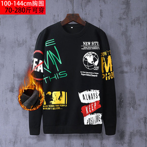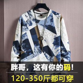 加大码男士秋季印花套头卫衣加肥胖子宽松衣服潮流帅气...