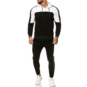 亚马逊EBAY秋冬男士运动休闲拼条连帽套装卫衣男...