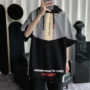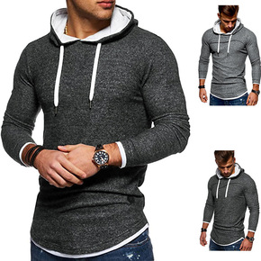 2022 春秋新款亚马逊批发欧码时尚撞色男士连帽长...