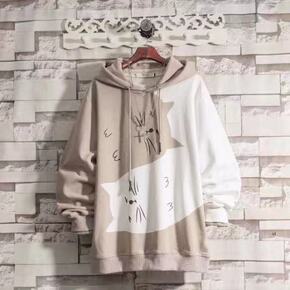 2021国潮宽松交融猫咪图案卫衣小众连帽卫衣男秋冬...